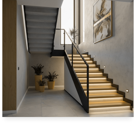 Предоставляем эскизы или 3D-визуализацию, чтобы вы могли увидеть будущее оформление своей лестницы заранее и внести корректировки.